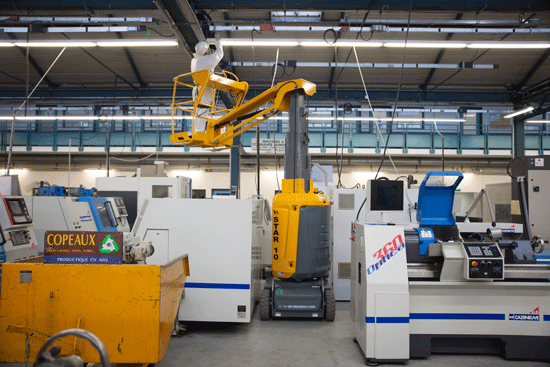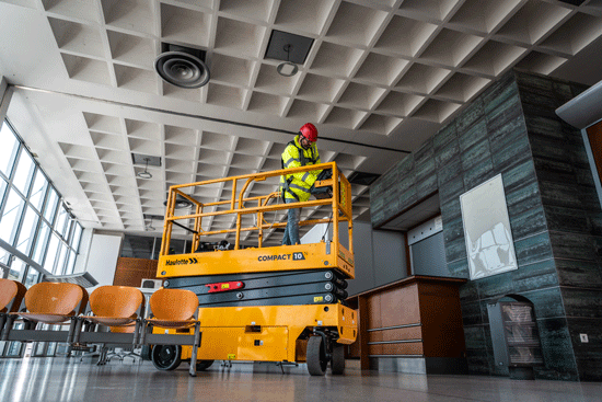 Compacte schaarhoogwerkers of mastliften zijn uitstekende keuzes voor smalle ruimtes. Dankzij hun beperkte afmetingen zijn ze eenvoudig te manoeuvreren in beperkte werkgebieden. Bij de COMPACT-serie van Haulotte kunnen de leuningen worden ingeklapt om door lage deuropeningen te rijden, een bijzonder handige functie voor binnenwerk met specifieke toepassingen.